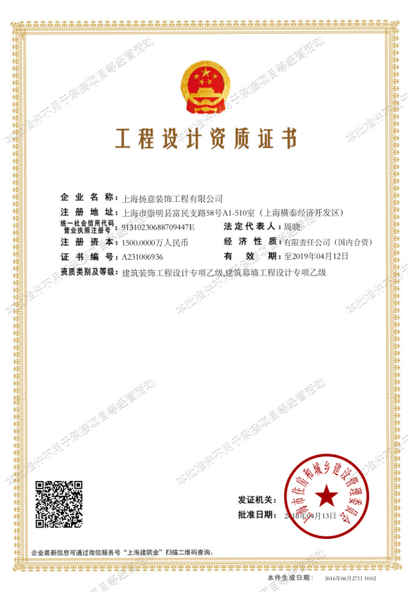 Certificate of envir
